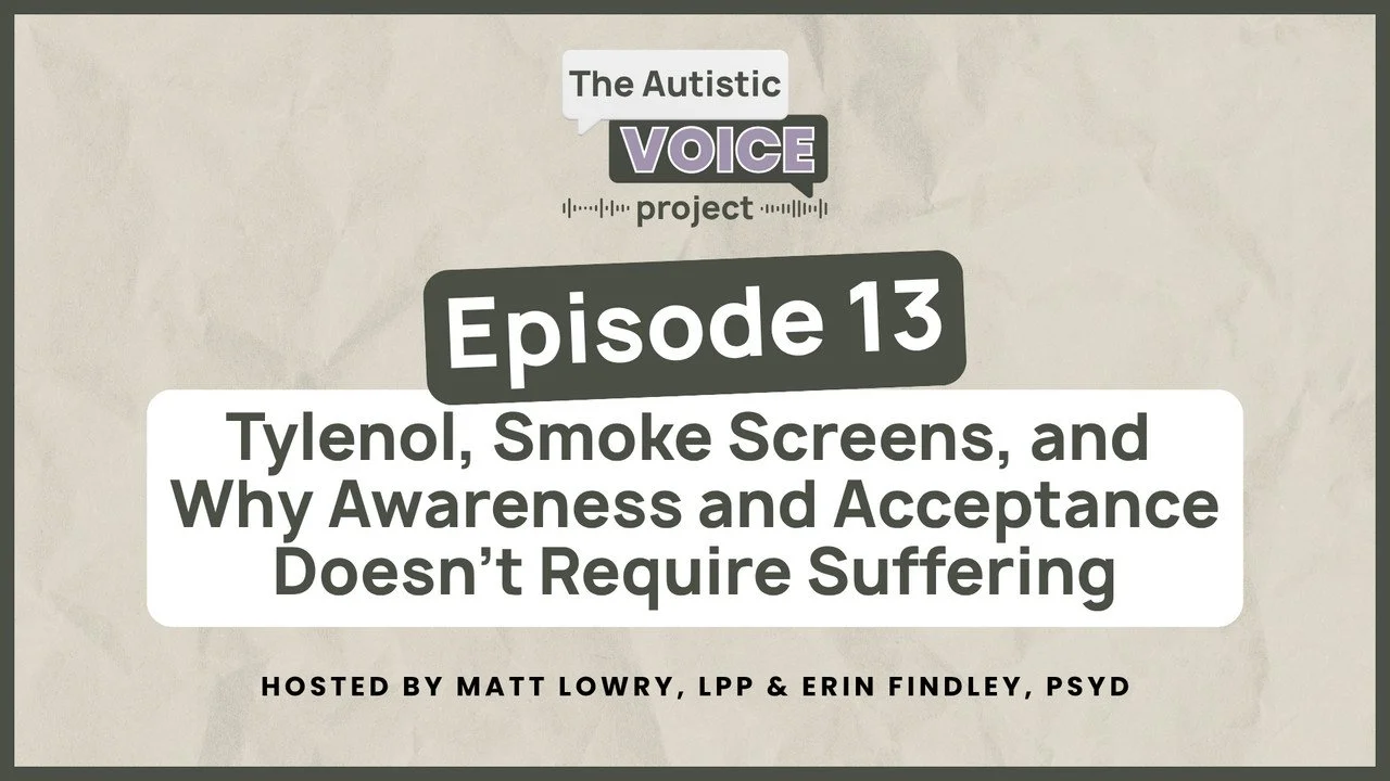 The Autistic VOICE Project 10/3/25 The Autistic VOICE Project 10/3/25 Episode 13: Tylenol, Smoke Screens, and Why Awareness and Acceptance Doesn’t Require Suffering Read More The Autistic VOICE Project 9/25/25 The Autistic VOICE Project 9/25/25 Episode 12: Routines, Chaos Buffers, and Why Your To-Do List Is a Hydra Read More The Autistic VOICE Project 9/23/25 The Autistic VOICE Project 9/23/25 Bonus Episode (11.5)! Autistic Professionals respond to Tylenolgate Read More The Autistic VOICE Project 9/22/25 The Autistic VOICE Project 9/22/25 Episode 11: Scaffolding, Doom Piles, and the Autistic Art of Doing It Your Own Damn Way Read More The Autistic VOICE Project 9/12/25 The Autistic VOICE Project 9/12/25 Episode 10: Self-Identification, Spoons, and the Myth That Girls Can’t Be Autistic Read More Erin Findley, PsyD 9/4/25 Erin Findley, PsyD 9/4/25 Episode 9: Murderbot, Masks, and the Rise and Fall of Sanctuary Moon Read More Erin Findley, PsyD 8/30/25 Erin Findley, PsyD 8/30/25 Episode 8: Love, Muffin Baskets, and the Myth of “Too Sensitive” Read More Erin Findley, PsyD 8/22/25 Erin Findley, PsyD 8/22/25 Episode 7: Two Genders? That’s Cute. Let’s Talk Reality. Read More Erin Findley, PsyD 8/15/25 Erin Findley, PsyD 8/15/25 Episode 6: Stimming, Scripts, and Why “I’m Fine” Is the Biggest Lie Ever Told Read More Erin Findley, PsyD 8/1/25 Erin Findley, PsyD 8/1/25 Episode 5: Autistic Identity vs. Diagnosis, and Comic Con Read More Erin Findley, PsyD 7/25/25 Erin Findley, PsyD 7/25/25 Episode 4: Cassandra Syndrome, Misattunement, and Tangents We Refuse to Edit Out Read More Erin Findley, PsyD 7/18/25 Erin Findley, PsyD 7/18/25 Episode 3: Anxiety, Neuroculture, and Pizza Read More Erin Findley, PsyD 7/11/25 Erin Findley, PsyD 7/11/25 Episode 2: Meet Erin and Matt! Read More Erin Findley, PsyD 7/6/25 Erin Findley, PsyD 7/6/25 Episode 1: The Beginning! Episode 1: The Beginning! Read More